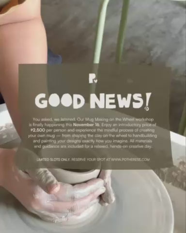 Good news! After many requests, our Mug Making on the Wheel workshop is finally happening this November 16 (Sunday) 3-6PM! Enjoy an introductory price of ₱2,500 per person and experience the mindful process of creating your own mug — from shaping the clay on the wheel to handbuilding and painting your designs exactly how you imagine. All materials and guidance are included for a relaxed, hands-on creative day.